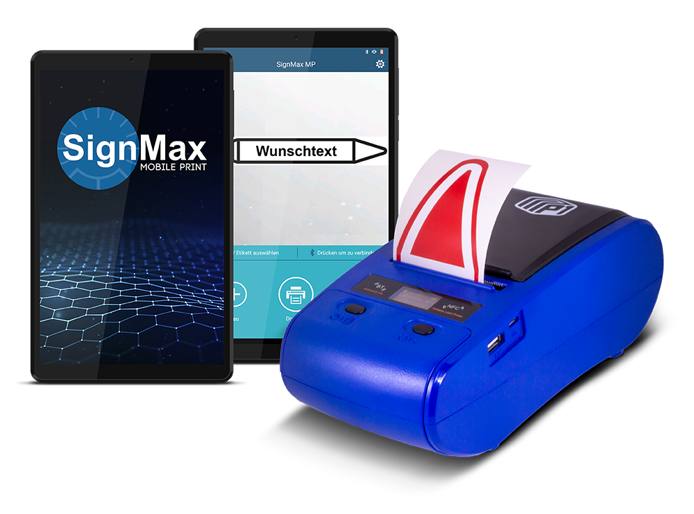 Der LabelMax MP1 ist innerhalb von Sekunden einsatzbereit. Dank der intuitiv zu bedienenden SignMax MP App, können Sie unterwegs auf ihrem Android Gerät Ihre individuellen Etiketten anlegen und direkt mit dem LabelMax MP1 ausdrucken. Das System ist dank des verbauten Akkus autark und kann unabhängig vom Stromnetz bedient werden..