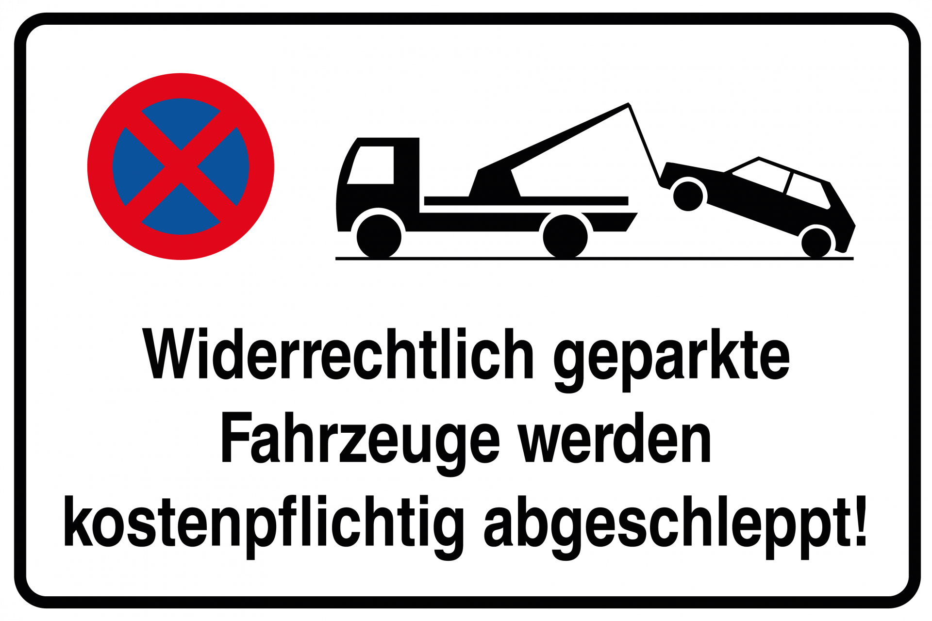 Parkplatzschild - Widerrechtlich geparkte Fahrzeuge werden kostenpflichtig abgeschleppt!