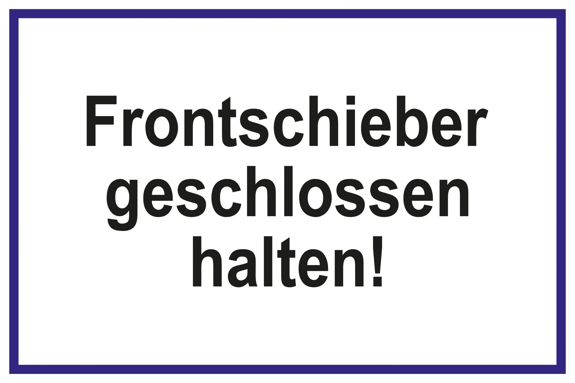 Laborschild - Frontschieber geschlossen halten!